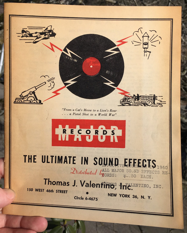 Major Records: Mood Music (5th Edition?) + Sound Effects, 1960: Copies of both were sold in 2016: "and... the amazing piece of the whole deal... A letter signed by Thomas J. Valentino himself, to a NUCLEAR FUEL COMPANY, offering him discounts on Major Records library music! You can't get more atomic-era than this."
