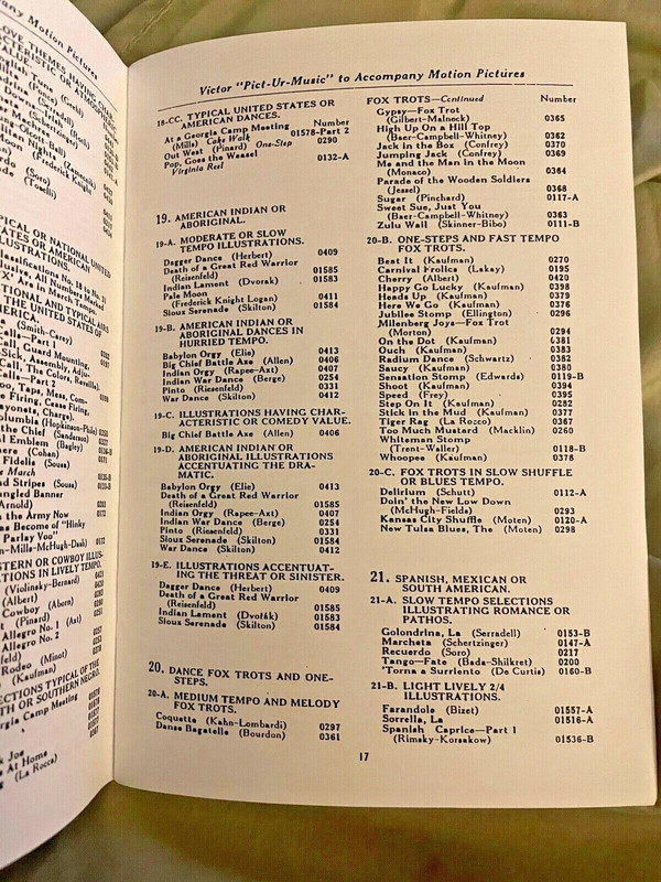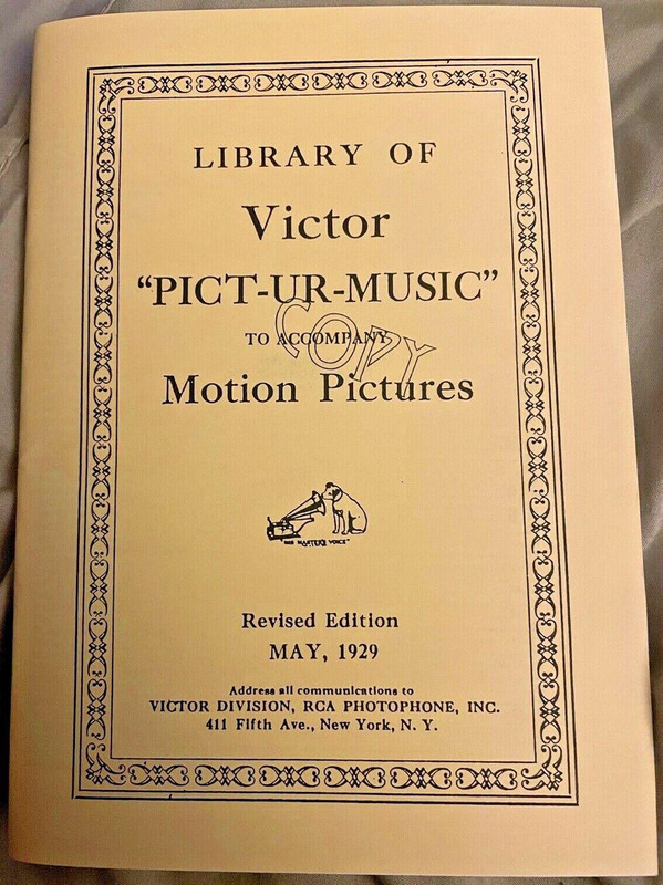 There are two of these listed on Worthpoint, both from the same seller. I have pooled photos and details here although it's possible there were differences between the two editions: "It comes in a heavy black plastic covered 3-ring binder that measures 7x9 inches. Inside are more than 100 pages that are tabbed (Light, Melodic, Dramatic, Short Cue, Specialized) and a Cross Index... Description: 9" x 7". 5 tab sections. 228 pp"