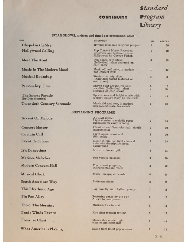 "The most comprehensive catalogue of dramatic themes, love themes, suspenseful introductions, bridges, endings, backgrounds for use in radio - television - film - industrial shows - advertising and amateur cinema."