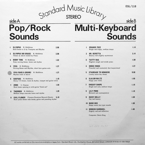 Well that was a bit of a surprise. ESL 118 has 8 tracks composed by the legendary Max Middleton. So, with regards my view that the Standard Library is sadly overlooked I rest my case. Thank you very much indeed Retro.